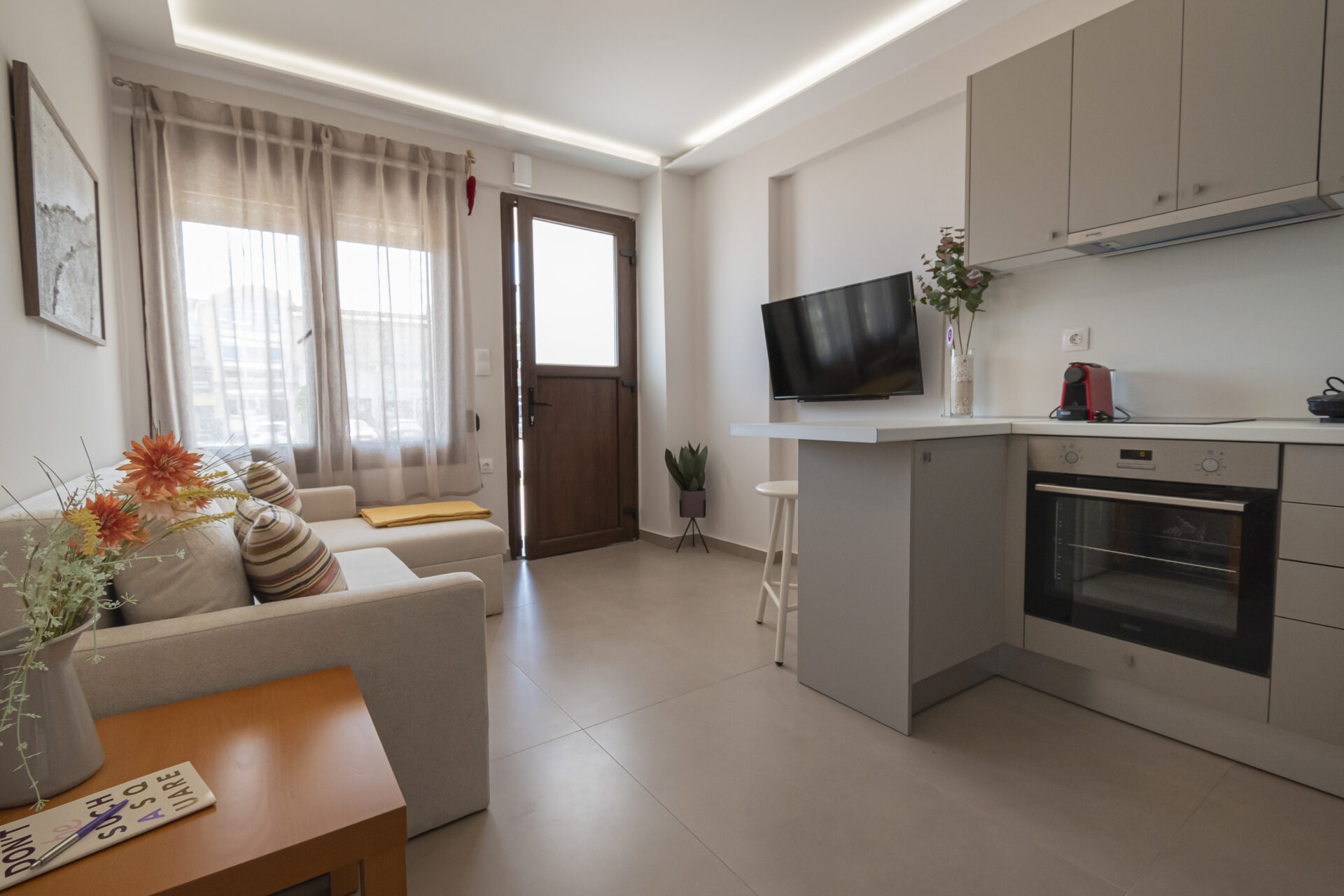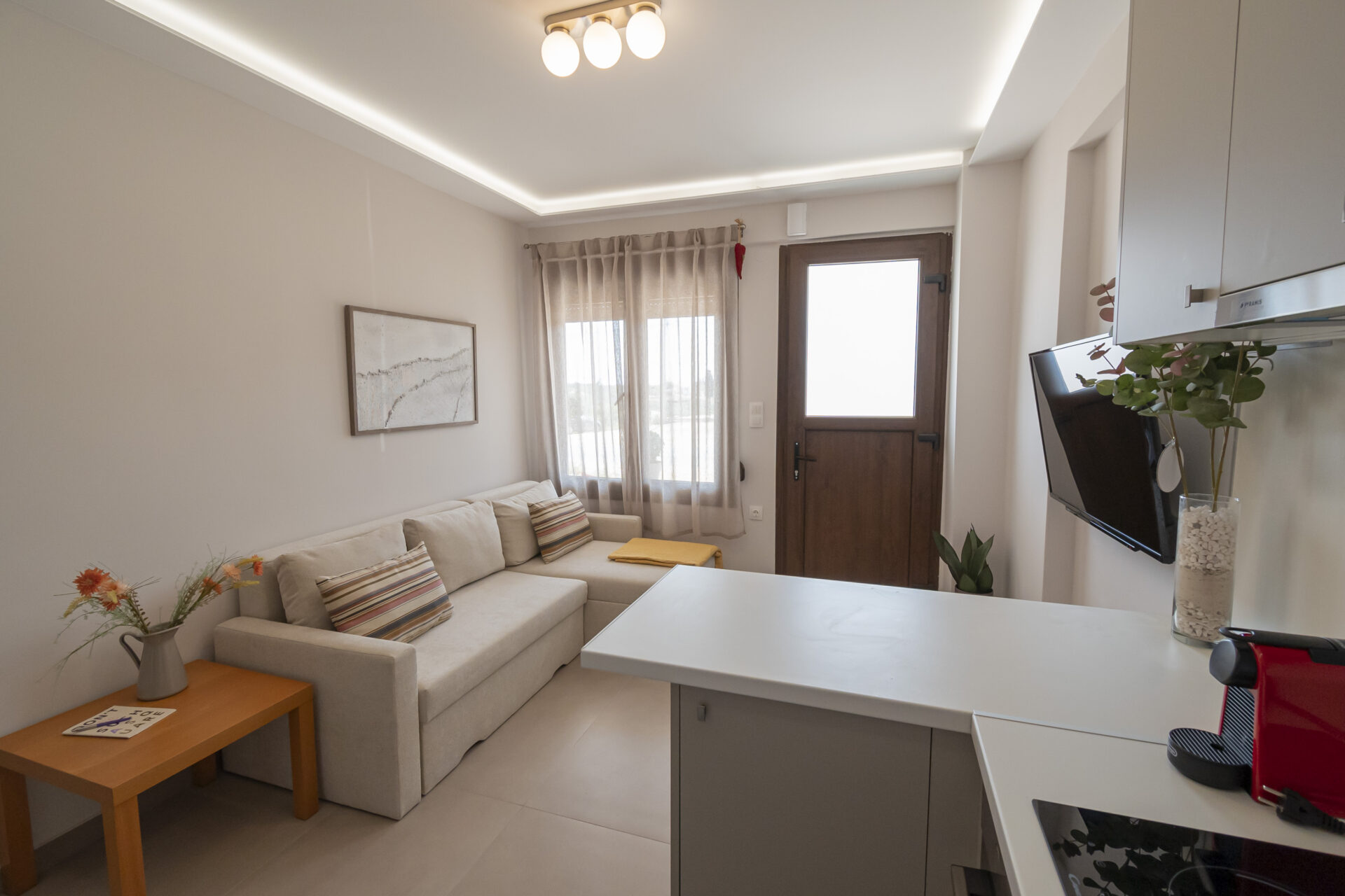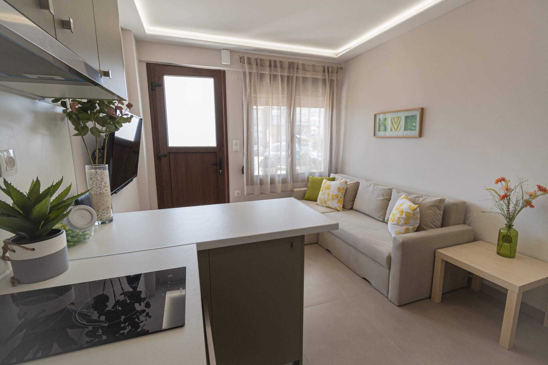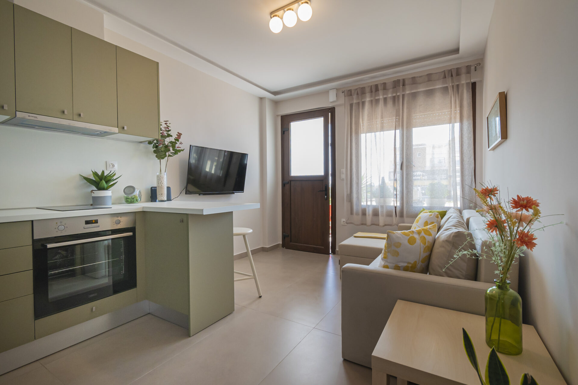 Ponuka zahŕňa dve nezávislé, plne zariadené a vybavené štúdiá, každé s výmerou 34 m², situované v prestížnom projekte AmicoSuites v centre Nea Moudania.