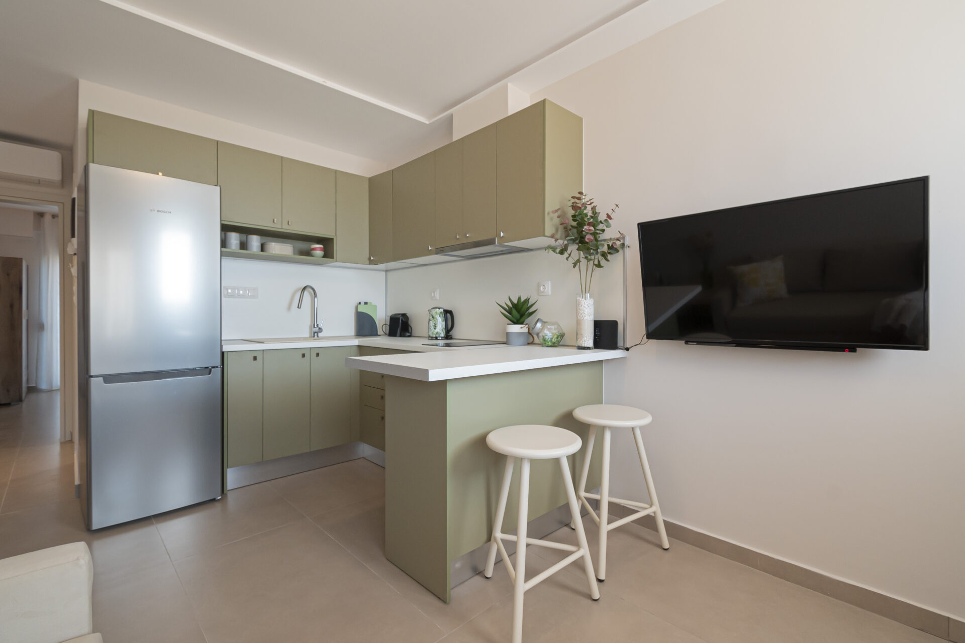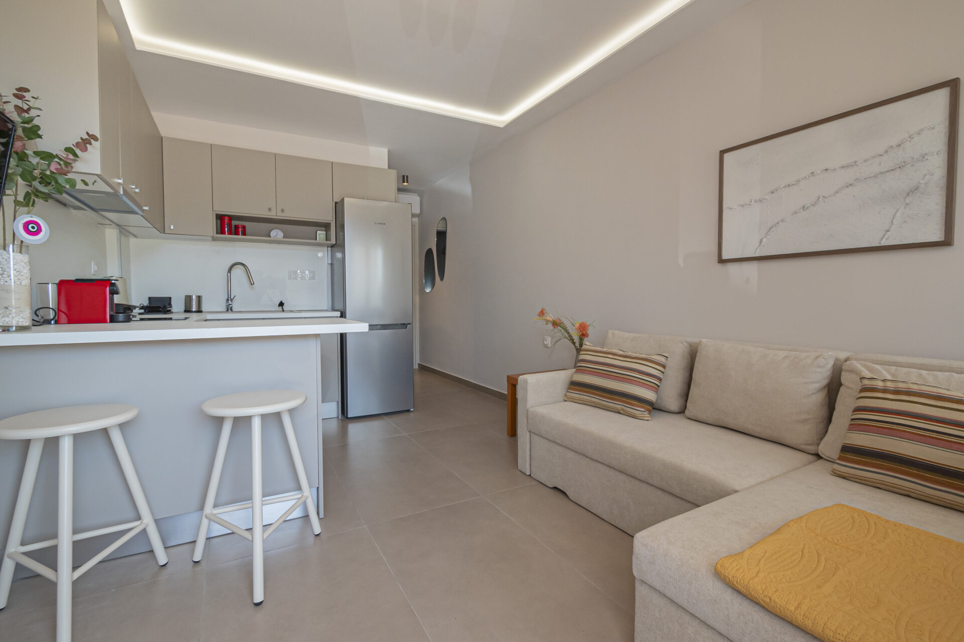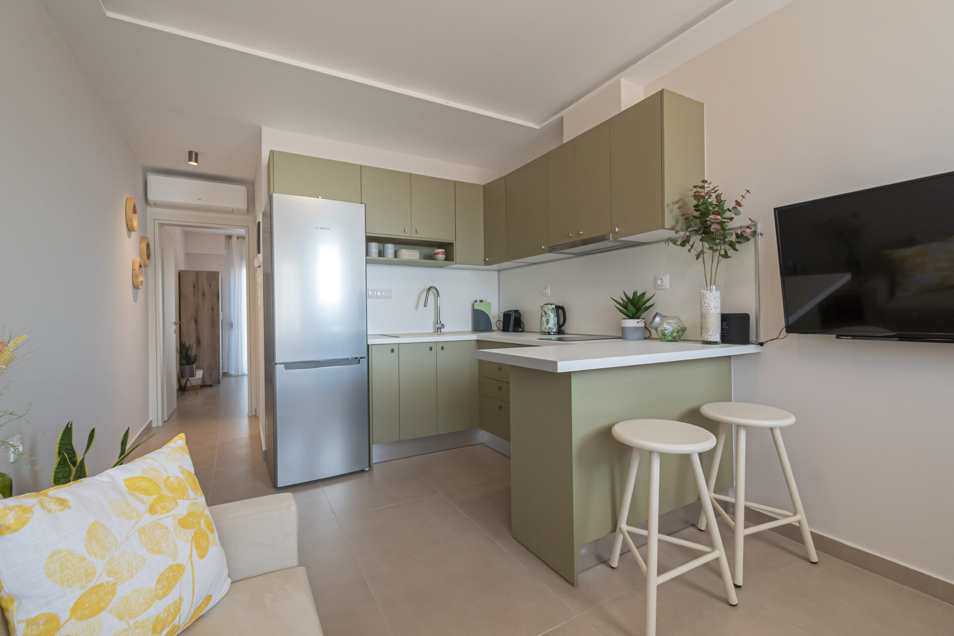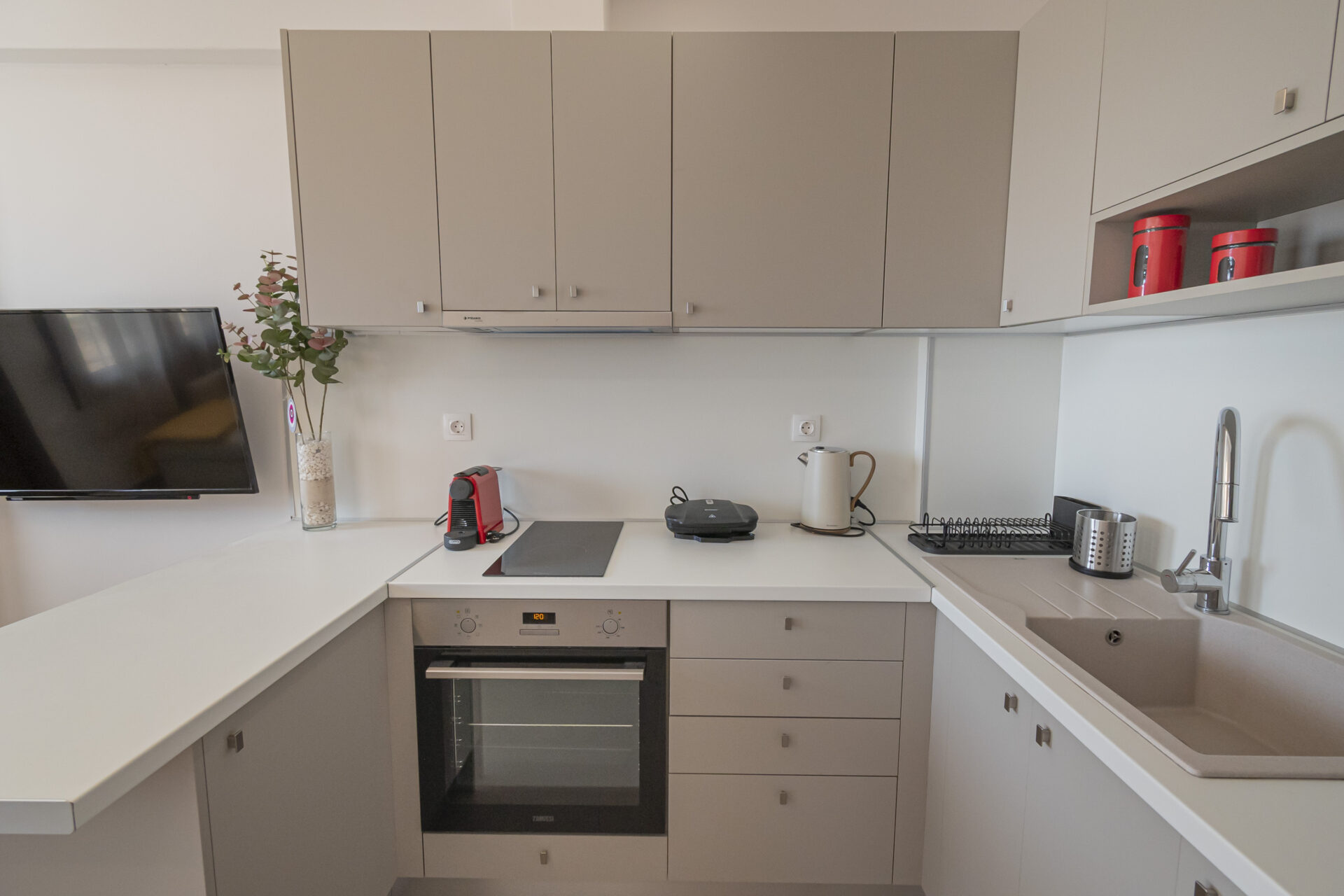 Ponuka zahŕňa dve nezávislé, plne zariadené a vybavené štúdiá, každé s výmerou 34 m², situované v prestížnom projekte AmicoSuites v centre Nea Moudania.